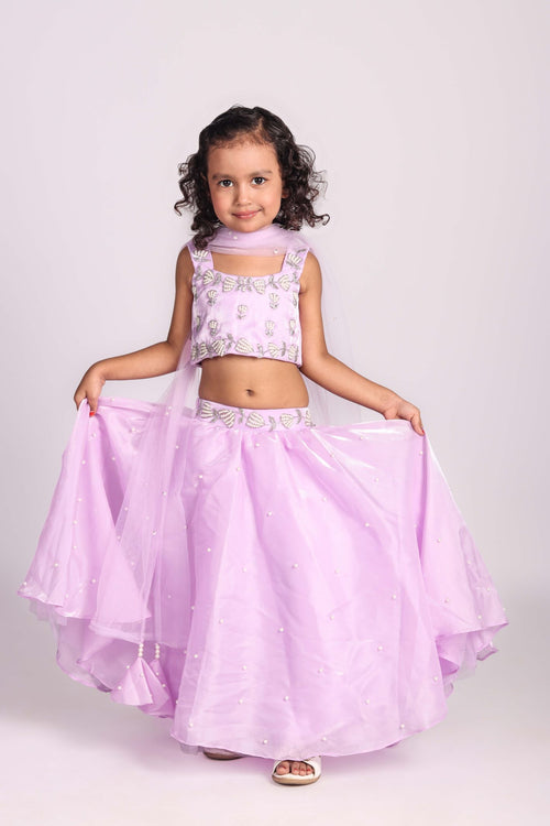 Soft lilac lehenga set featuring delicate pearl embellishments and butterfly-inspired detailing for an elegant festive look Lightweight layered skirt with graceful flare, designed for comfort and effortless twirls Matching sheer dupatta with pearl accents adds a refined and charming finishing touch Shipping Details : Dispatch...