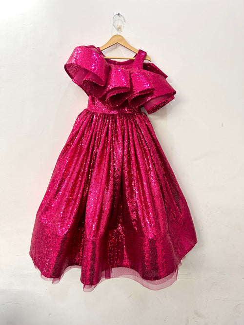 DETAILS: Dazzling hot pink dress Adorned with shimmery sequins Stylish bodice Knee length Gorgeous big bow Satin lining Sleeveless Headpiece included Color can be customize PRE ORDER & CUSTOM: Pre orders and custom orders take on average 3-4 weeks to prepare and ship This dress...