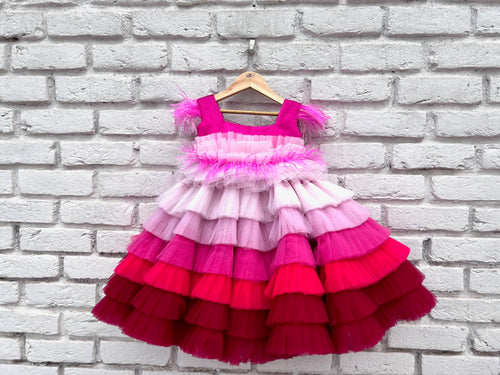 DETAILS: Beautiful pink ombre dress Delicate net fabric Adorned with back bow Feathers on shoulder and waist Knee-length Satin lining Sleeveless Color can be customize PRE ORDER & CUSTOM: Pre orders and custom orders take on average 3-4 weeks to prepare and ship This dress...