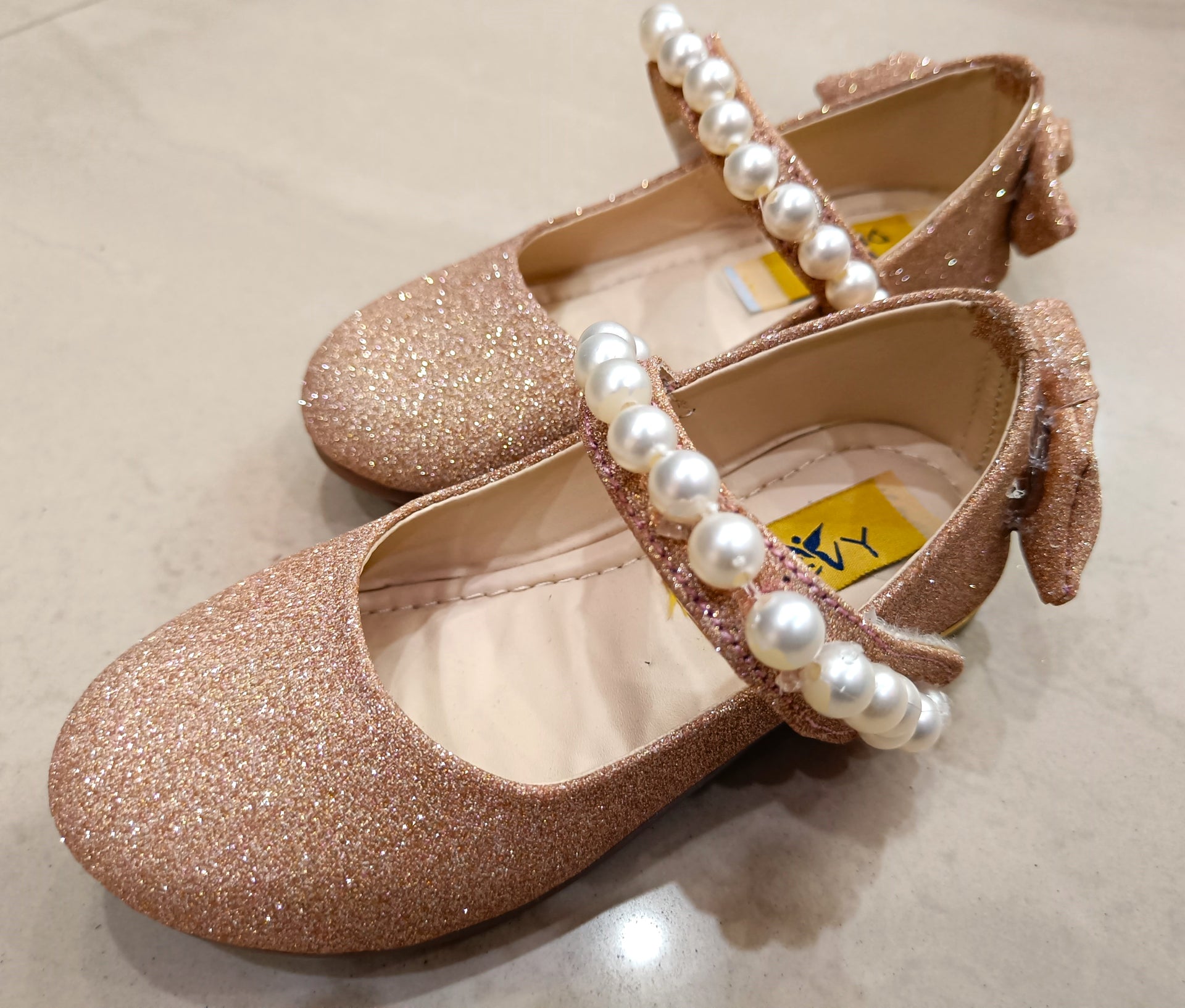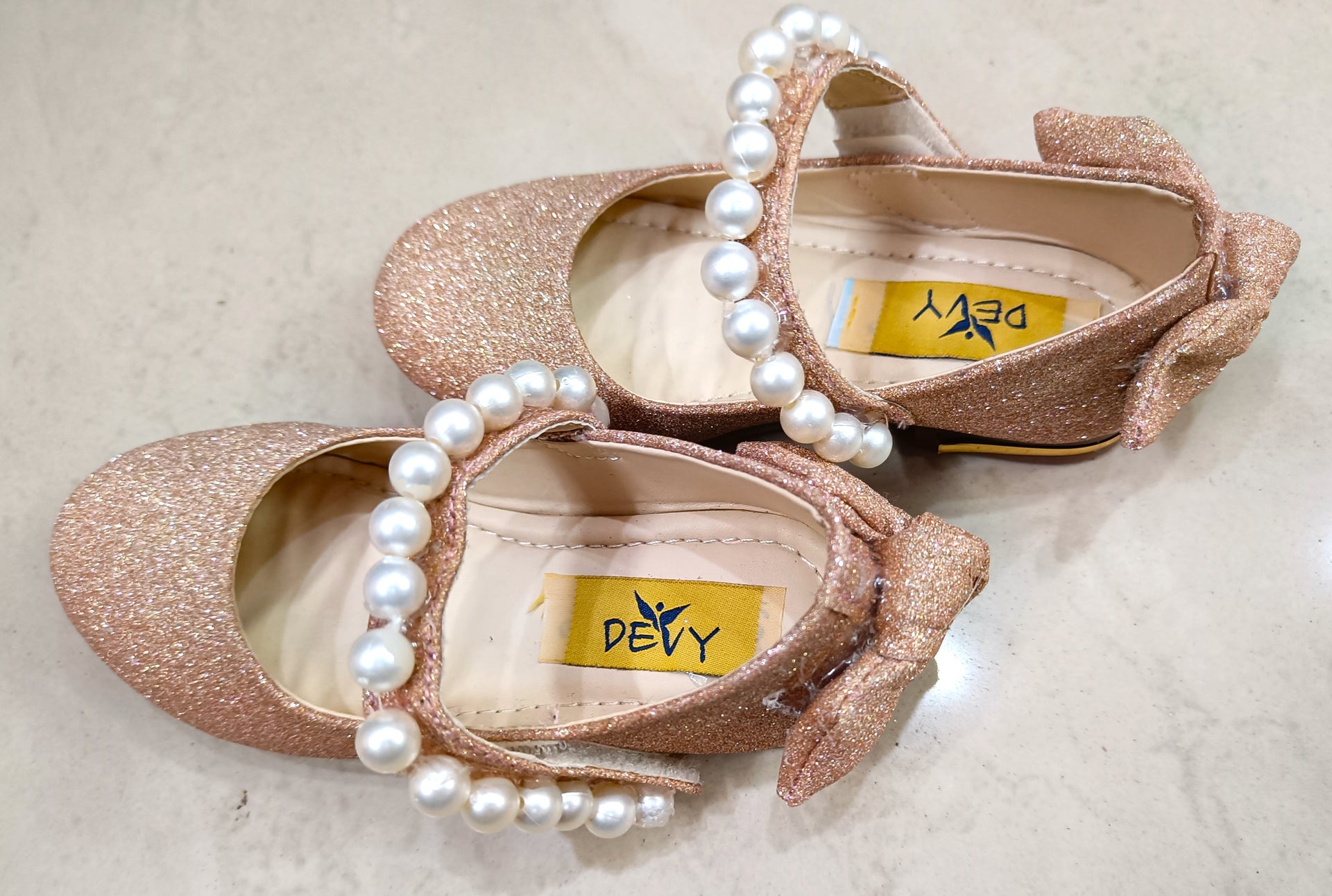 Let your little girls step out in style with this golden gleam embellished shoe, finely cushioned footbed and a perfect finish. This is a sparkingly nice shoe.